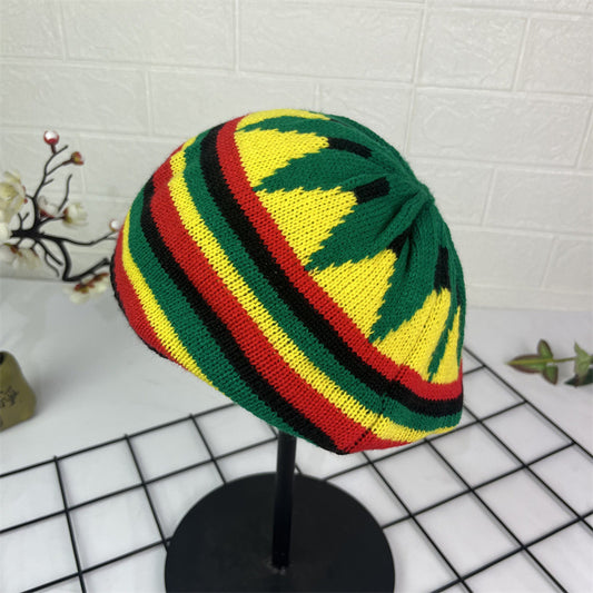 Hand Crocheted Wool Beret Jamaica Colorblock Knit