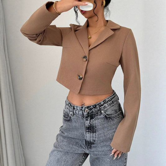 Light And Thin Fully Lined Slim Fit Stand Collar Casual Small Suit Jacket