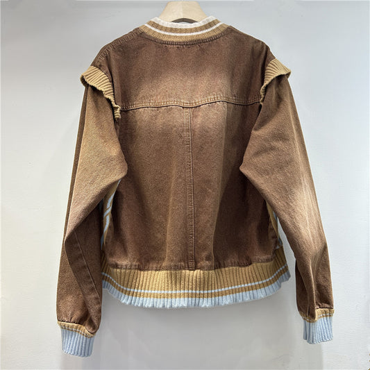 Stand Collar Knitted Stitching Contrast Color Design Minority All-match Coat
