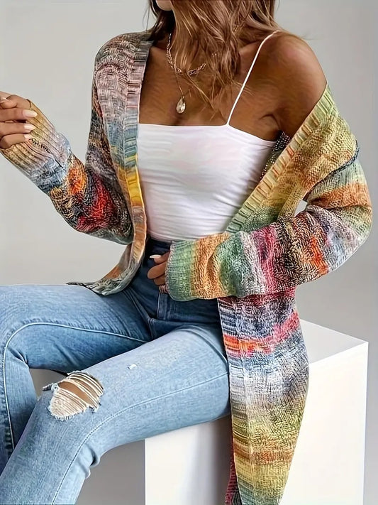 Ladies' Soft Acrylic Gradient Color Block Cardigan