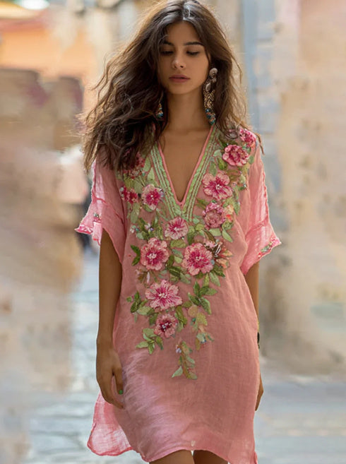 Bohemian Style Tie-dye Gradient V-neck Mini Dress