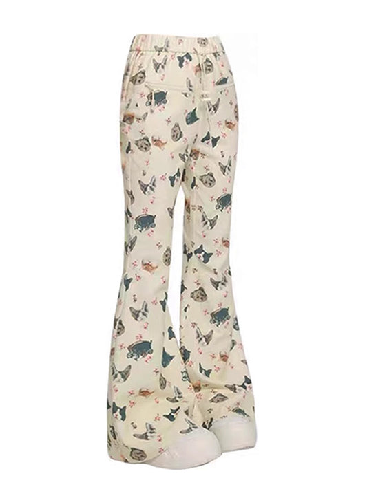 Hand-painted Graffiti Drawstring Printing Bell-bottom Pants Women