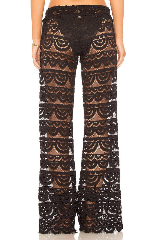 Sweet Lace Hollow-out Wide-leg Pants For Women
