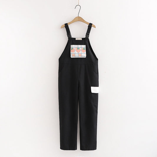 Harajuku Kawaii Strap Pants Women Sweet Plaid Strawberry