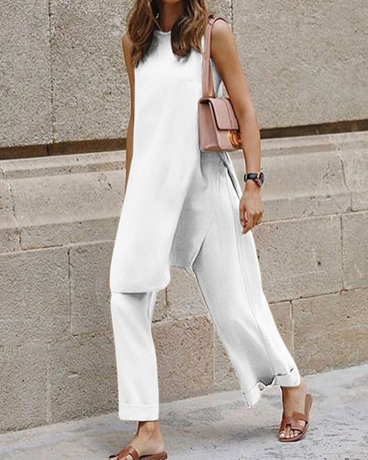 Casual Loose Blouse Wide Leg Pants Two-piece Suit Women