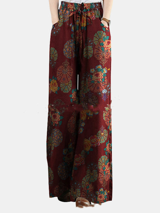 Ethnic Style Women Retro Chiffon Loose Wide-leg Pants