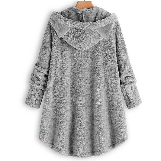 European And American Leisure Hooded Pocket Sweatshirt Simple Coat For Women