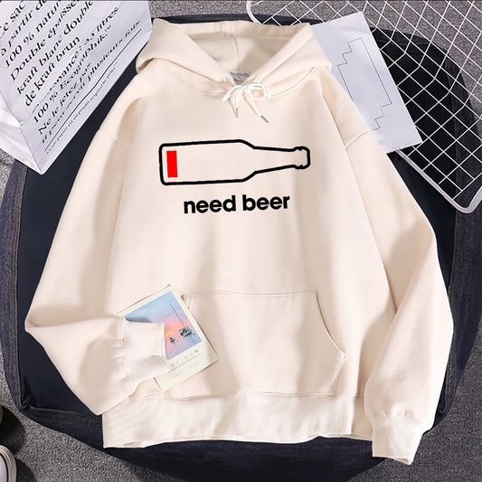 Breathable Casual Women's Hoodie Sweatshirt With Beer Print