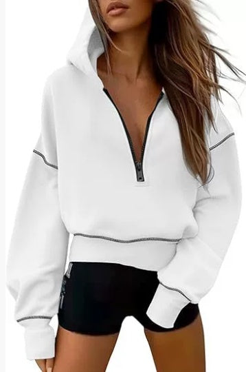 Hooded Sweatshirt Long Sleeve Half Zip Cropped Sweatshirt Fashionable Casual Women Autumn And Winter