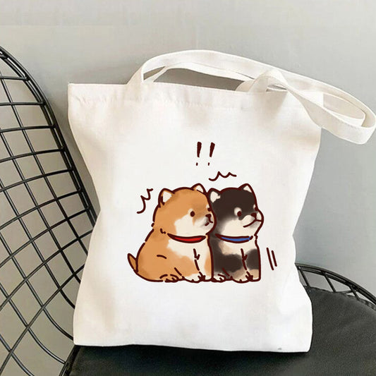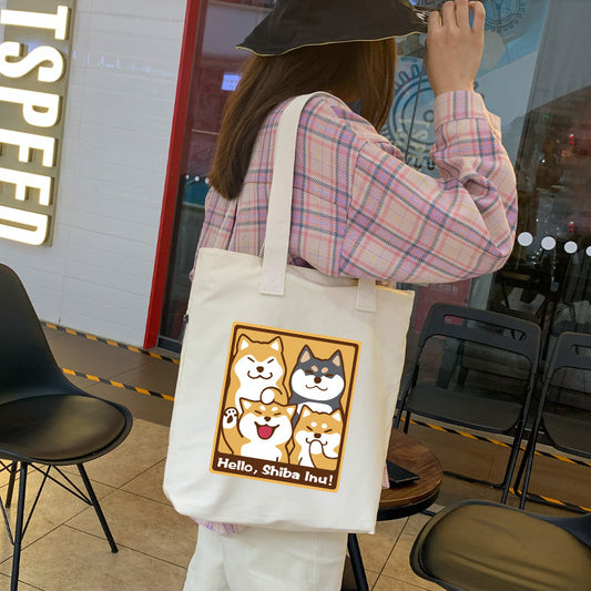 Shiba Inu Male And Female Shoulder Bag Canvas Large Capacity