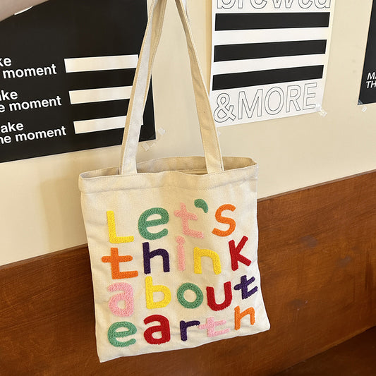 Letter Large Capacity Versatile Canvas Bag For Women
