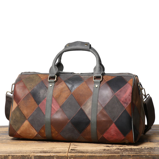 Vintage Men's Leather Rhombus Travel Bag