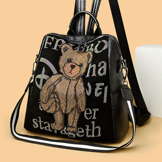 Multi-functional Rhinestone Bear Leather Backpack
