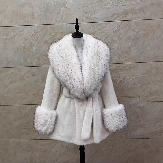 Mode Fuchspelz Pelzmantel Flauschige Plüsch Damenbekleidung