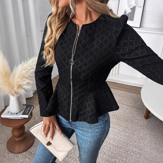Modische, elegante französische Jacke mit Polokragen in Volltonfarbe