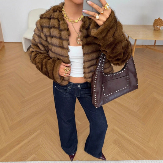 Damen Flauschige Casual Fuchspelzjacke Damenbekleidung