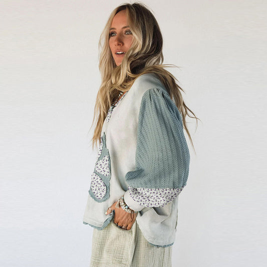 Lockeres, lässiges, bedrucktes Langarm-Oberteil