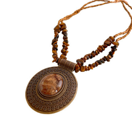 Halskette mit ovalem Anhänger aus unregelmäßigem Tigerauge-Stein im Retro- und Antik-Stil
