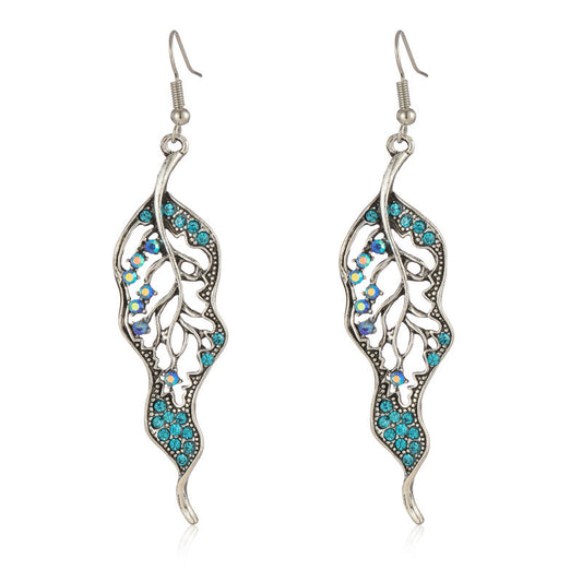 Retro Kreative Feder Blatt Ohrhänger Blume Weiß Türkis Ohrringe