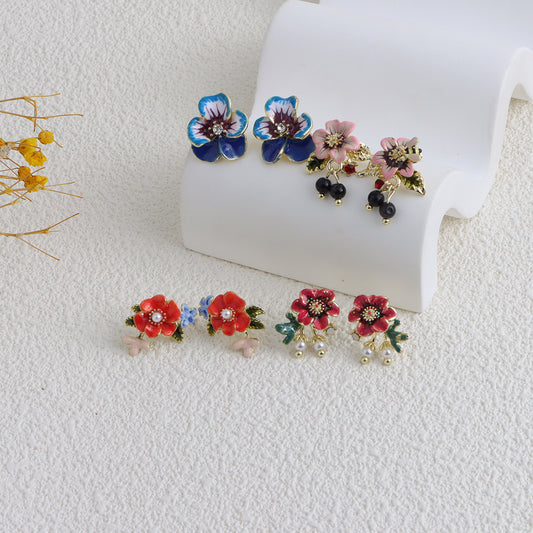 925 Silber Nadel Tropfen Öl Perle Blume Ohrringe