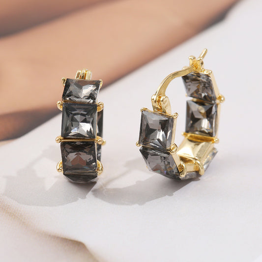 Südkorea Retro Quadrat Ohrringe Verfeinert Gnade Kristall