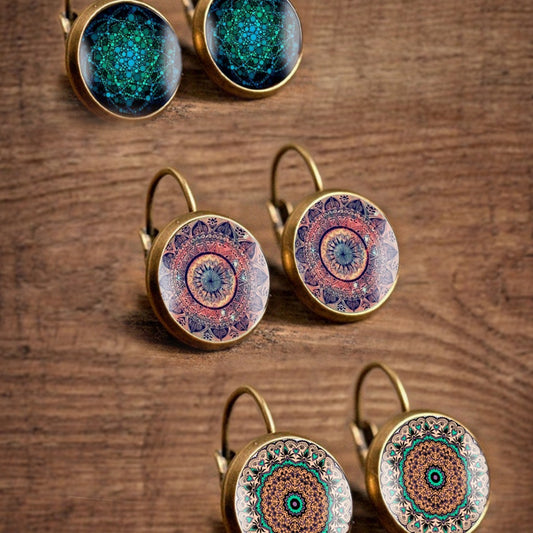 Vintage Datura Blumen Zeit Stein Glas Ohrringe für Frauen