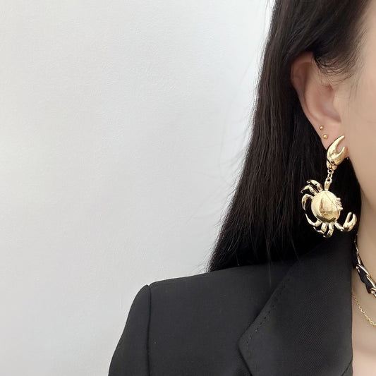 Marine Life Metall Textur Goldene Krabben Ohrringe