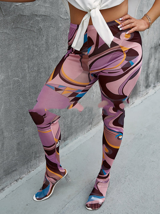 Bedruckte Yogahose, atmungsaktive Sport-Leggings mit hoher Taille