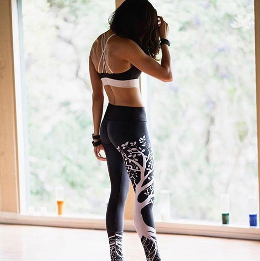 Hüft-Sportleggings mit hoher Taille und Zweig-Print