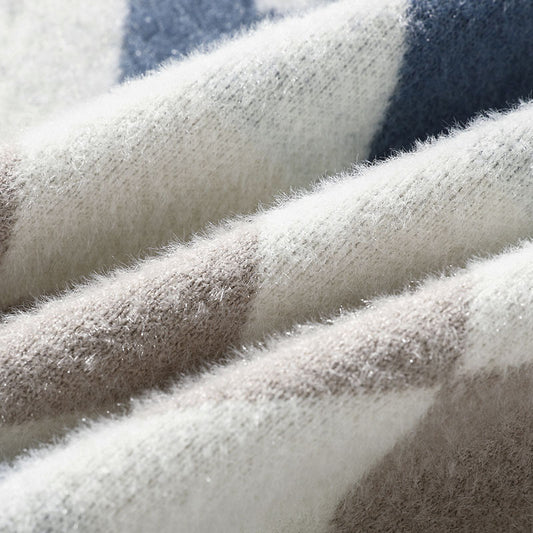 Herbst und Winter lose Schachbrett Rundhals Pullover männlich