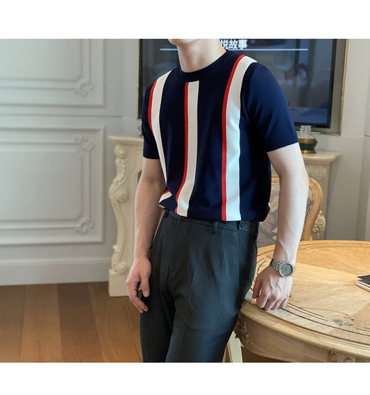 Koreanische Version des neuen einfachen vertikalen Streifen-Strick-T-Shirt-Unterhemds