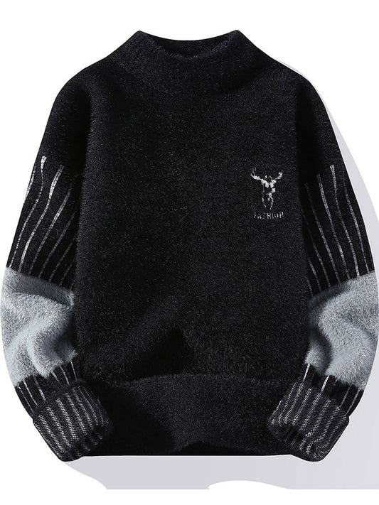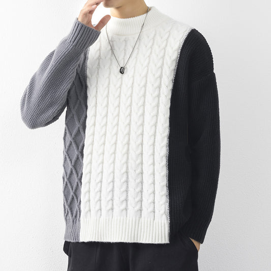 Herbst und Winter Pullover Herren Stehkragen Kontrastfarbe