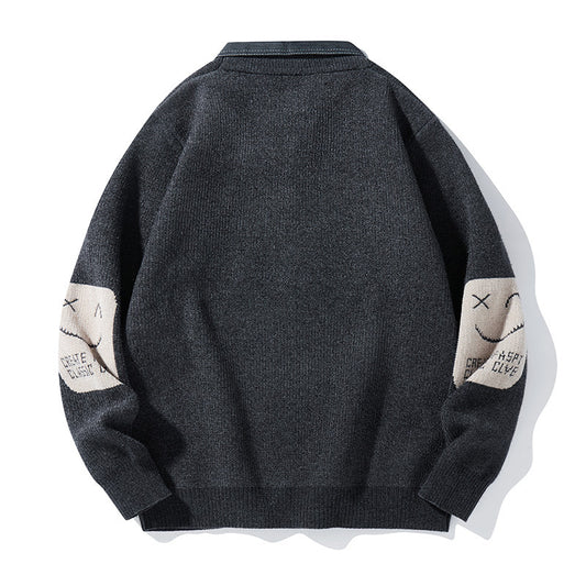 Portrait Jacquard Pullover Herren Retro Pullover Mantel