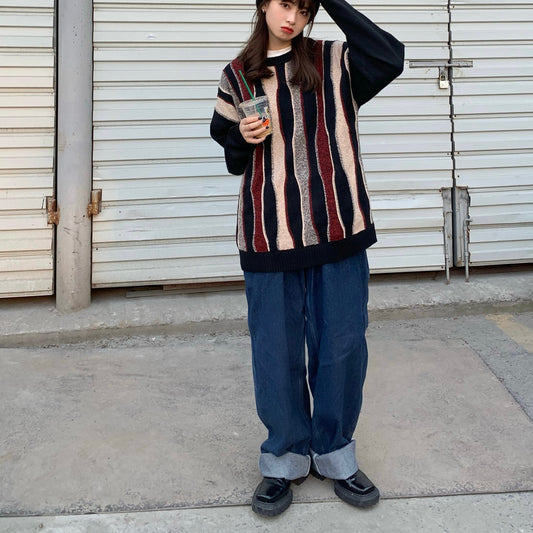 Retro-Persönlichkeit Rundhals-Strickpullover mit Streifen für Herren und Damen
