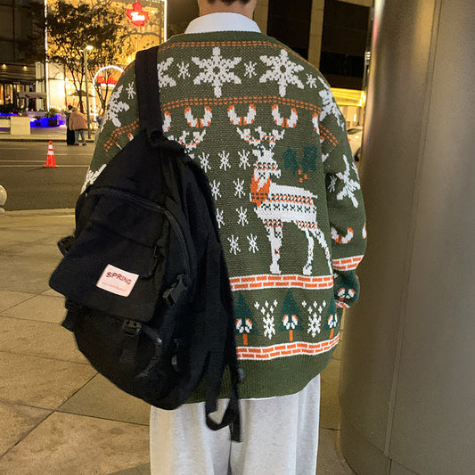Idle Style Cat Jacquard Pullover Oversize Cardigan Pullover