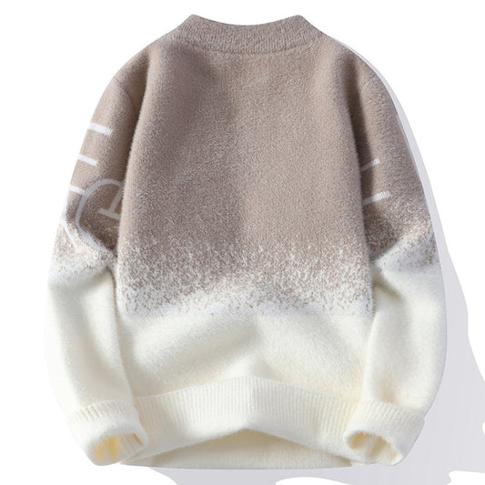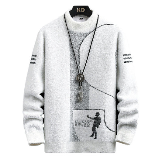 Personalisierter Strickpullover für Herren mit Plüschverdickung und langen Ärmeln und Rundhalsausschnitt