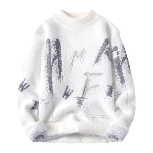 Winter Digital Printing Long Sleeve Stand Collar Half Button Sweater Men