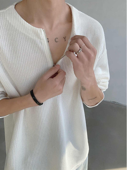 New Texture Sense Henry Collar Half Zipper Sweater For Men