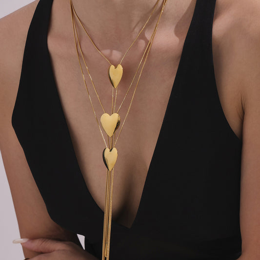 Lange, ausziehbare Halskette aus glänzendem Edelstahl mit Herz