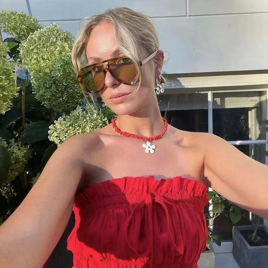 Rote neue Stil Kies Schlüsselbein Kette Süßwasser Perle Halskette für Frauen