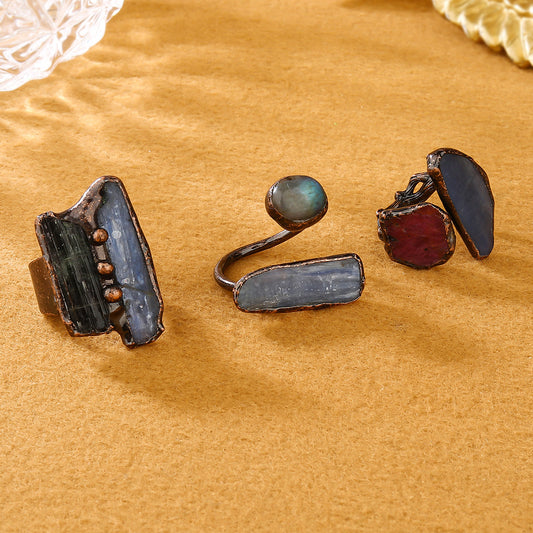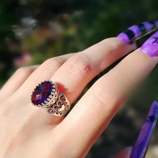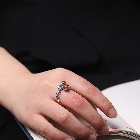 Offener Ring Chalcedon Großer Edelstein Roter Granat Persönlichkeit