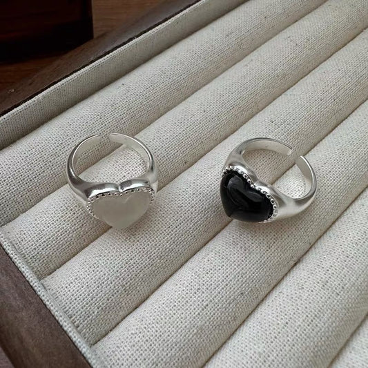 S925 Sterling Silber Nischendesign Herz Achat Ring
