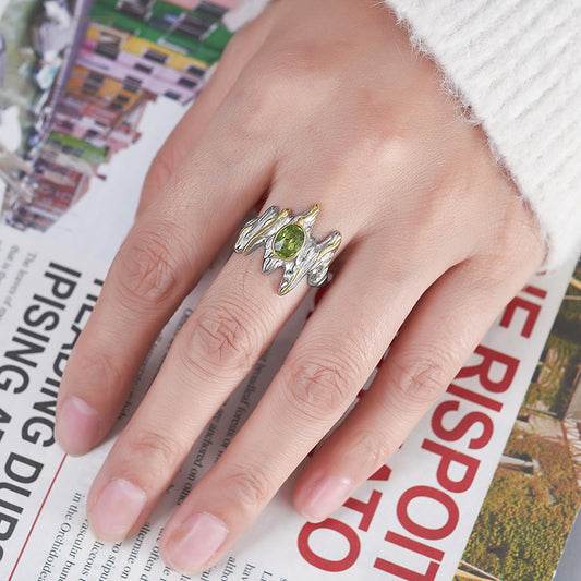 S925 Sterling Silber Unregelmäßige Persönlichkeit Unisex Stil Prehnit Offener Ring