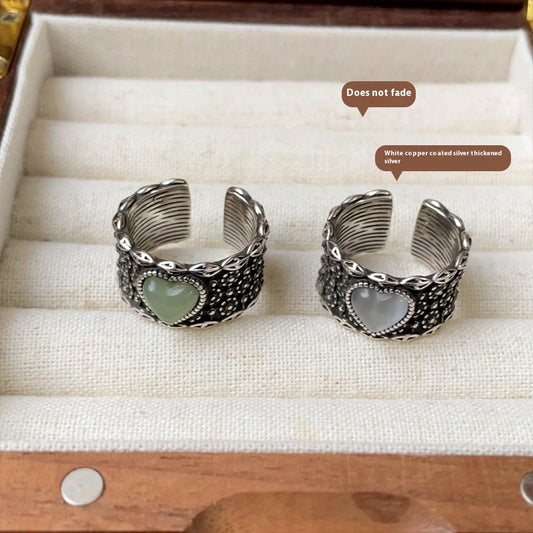 Retro-Ring mit breitem Gesicht und weißem Mondlicht und offenem Temperament