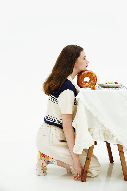 Damen-Pullover mit bestickten Keksen, lockerer Revers-Strick