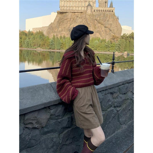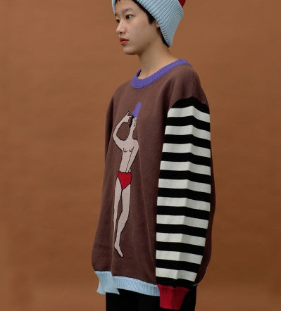 Gestreifter Pullover Damen Design Nische Strickmode Lose