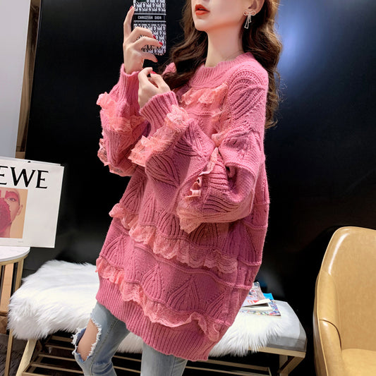 Herbst winter pullover frauen kopf voller baumwolle strickwaren, stickerei lose hundert set lange-ärmeln mantel