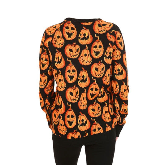 Lockere Damenstrickwaren in Kürbis-Jacquard-Optik in Kontrastfarbe