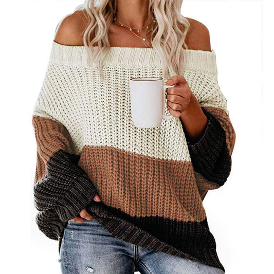 Damenmode Lose Lässige Patchwork Streifen Strickwaren