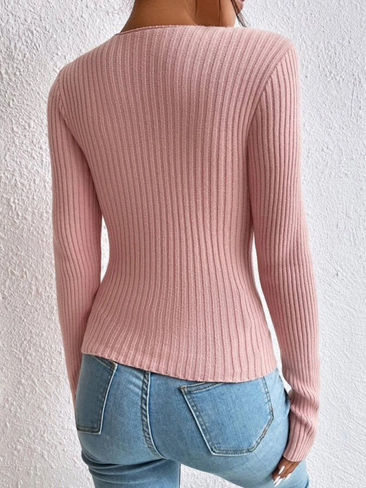 Einfarbiger Langarm-Strickpullover mit Knoten für Damen